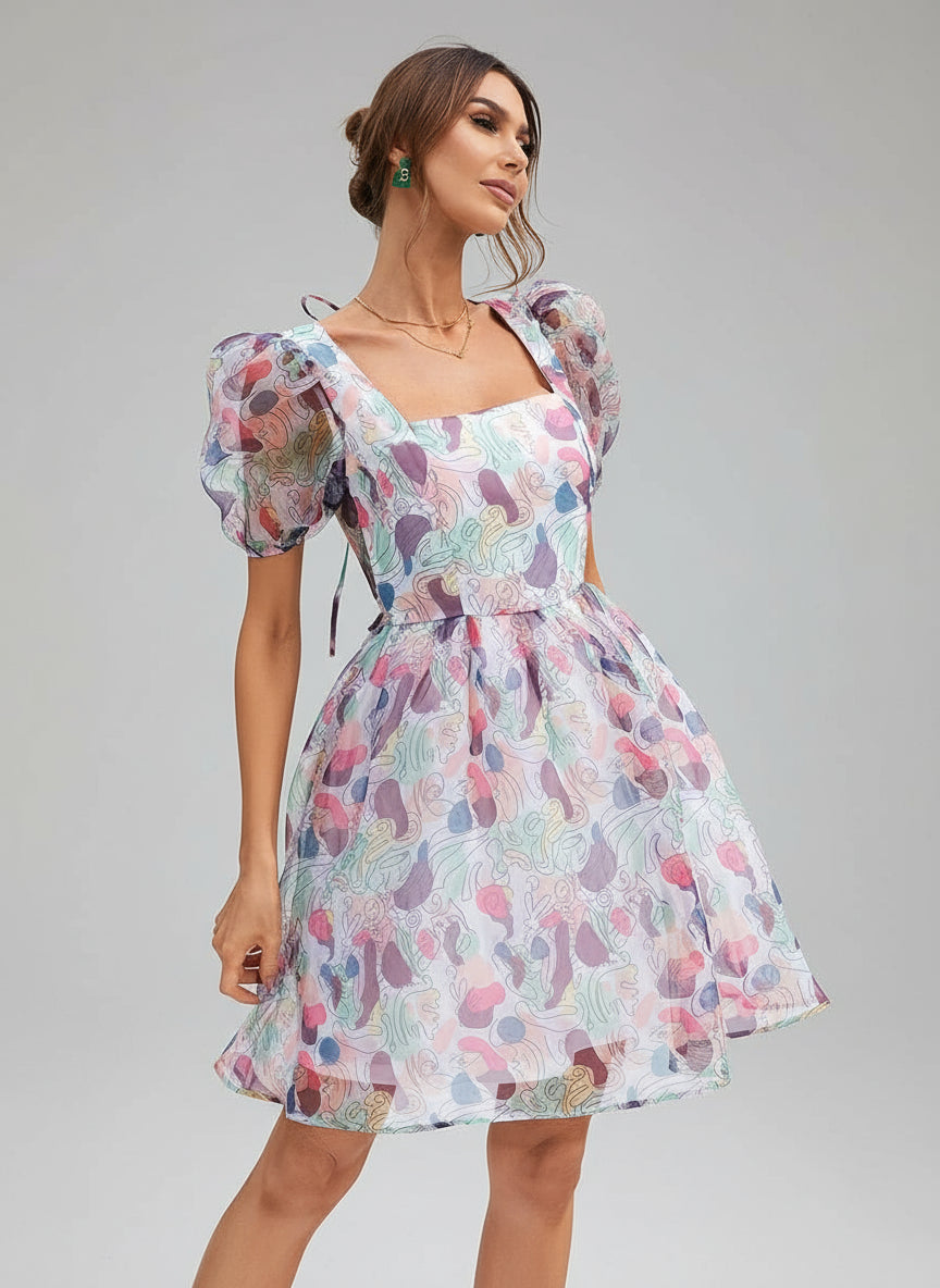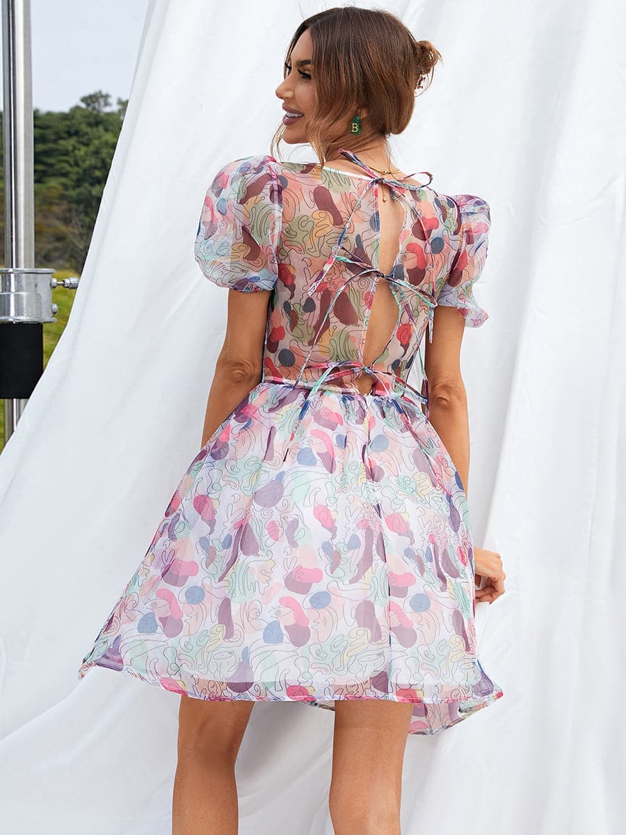 A Line Mini White Printed Casual Dress XH1846