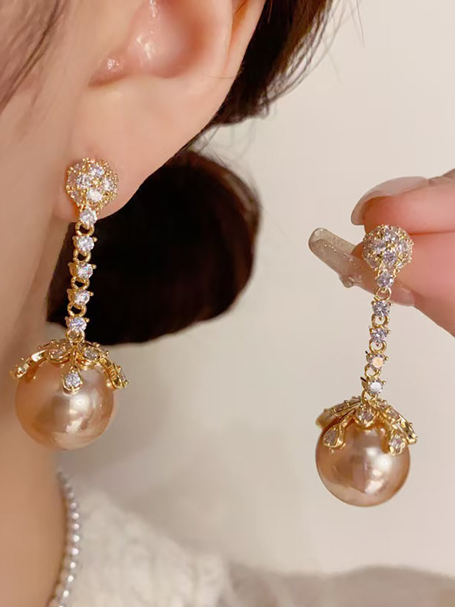 Chain Alloy Inlay Stone Long Tassel Earrings MSE101023